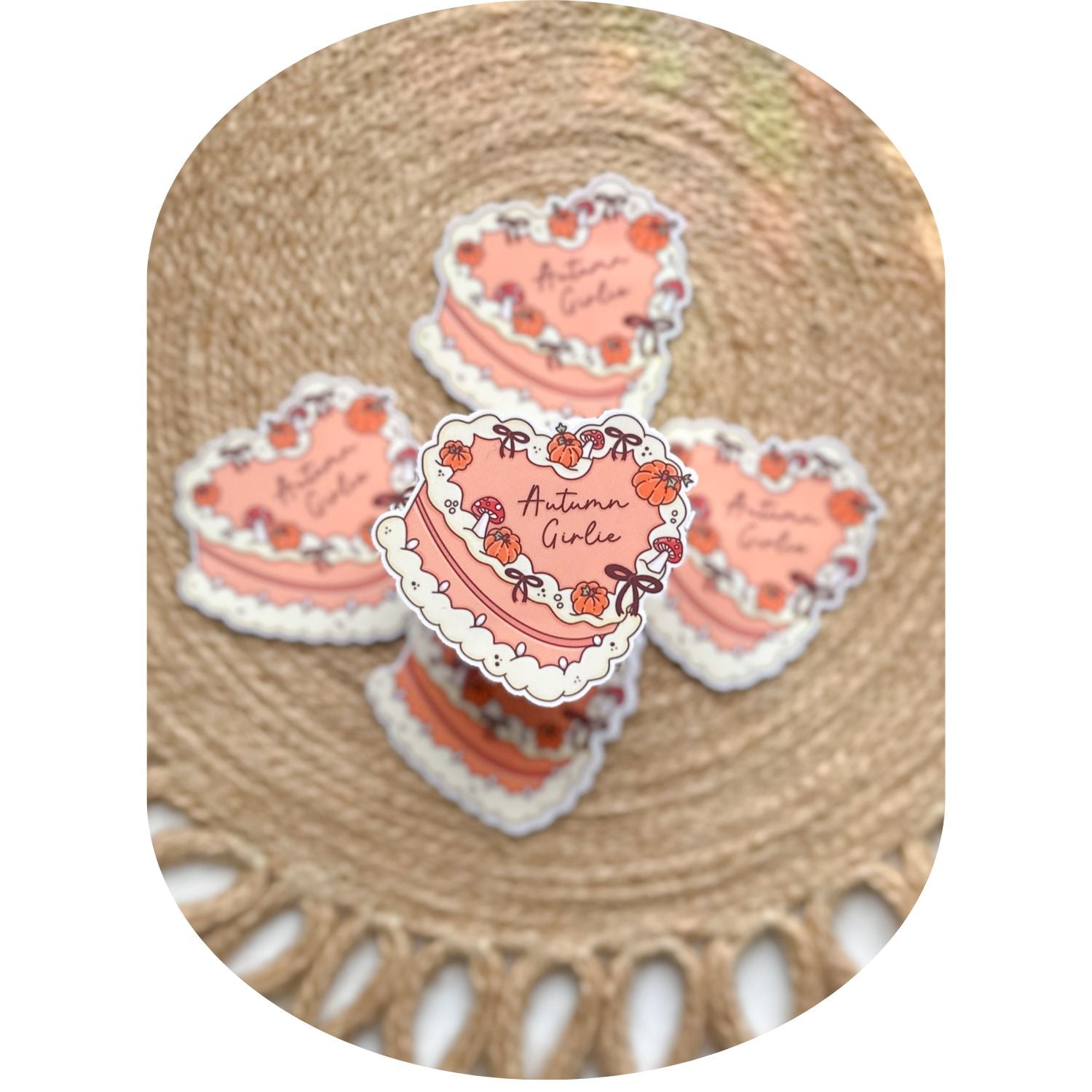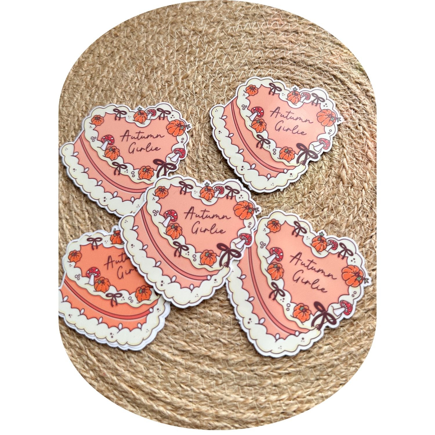 A sweet fall treat that lasts longer than the real thing! This heart-shaped “Autumn Girlie” cake sticker is perfect for dressing up your Kindle, laptop, water bottle, or planner. Its cozy design makes it a must-have for fall lovers.