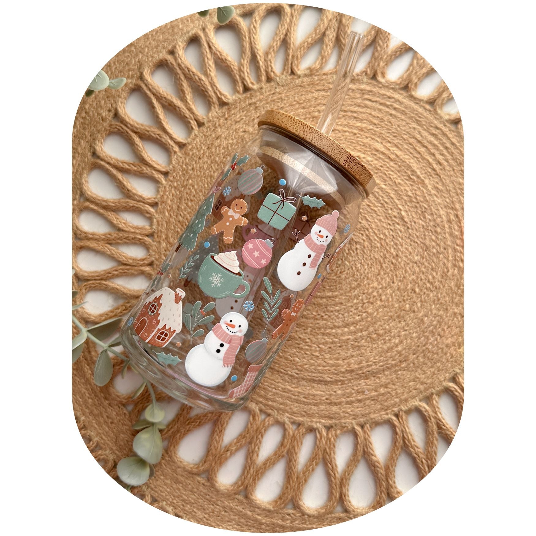 A fun and festive holiday cup decorated with gingerbread cookies, snowmen, gifts, and cozy Christmas icons. Perfect for holiday sips all season long.