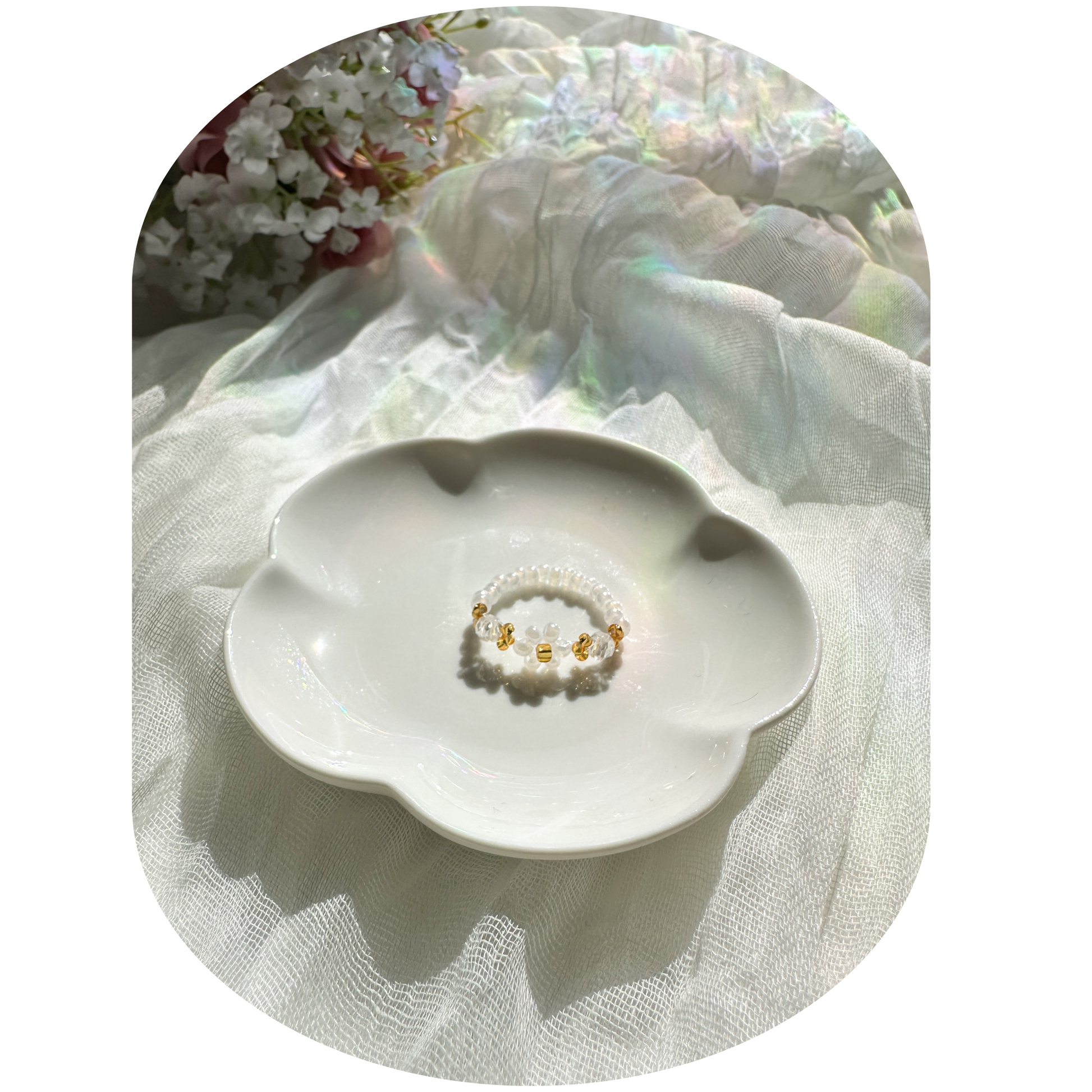 These updated Cozy Petals rings are handmade to match the daisy-filled charm of your favorite bracelets. Each one features a tiny floral bead nestled between smooth white seed beads and gold accents — like a little bloom tucked into your hands.