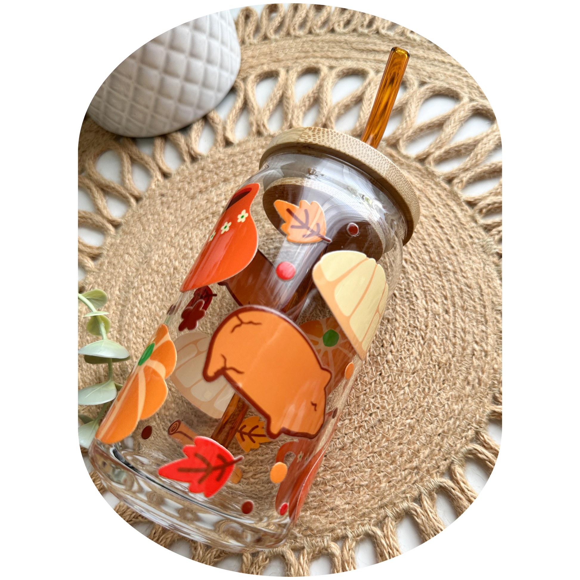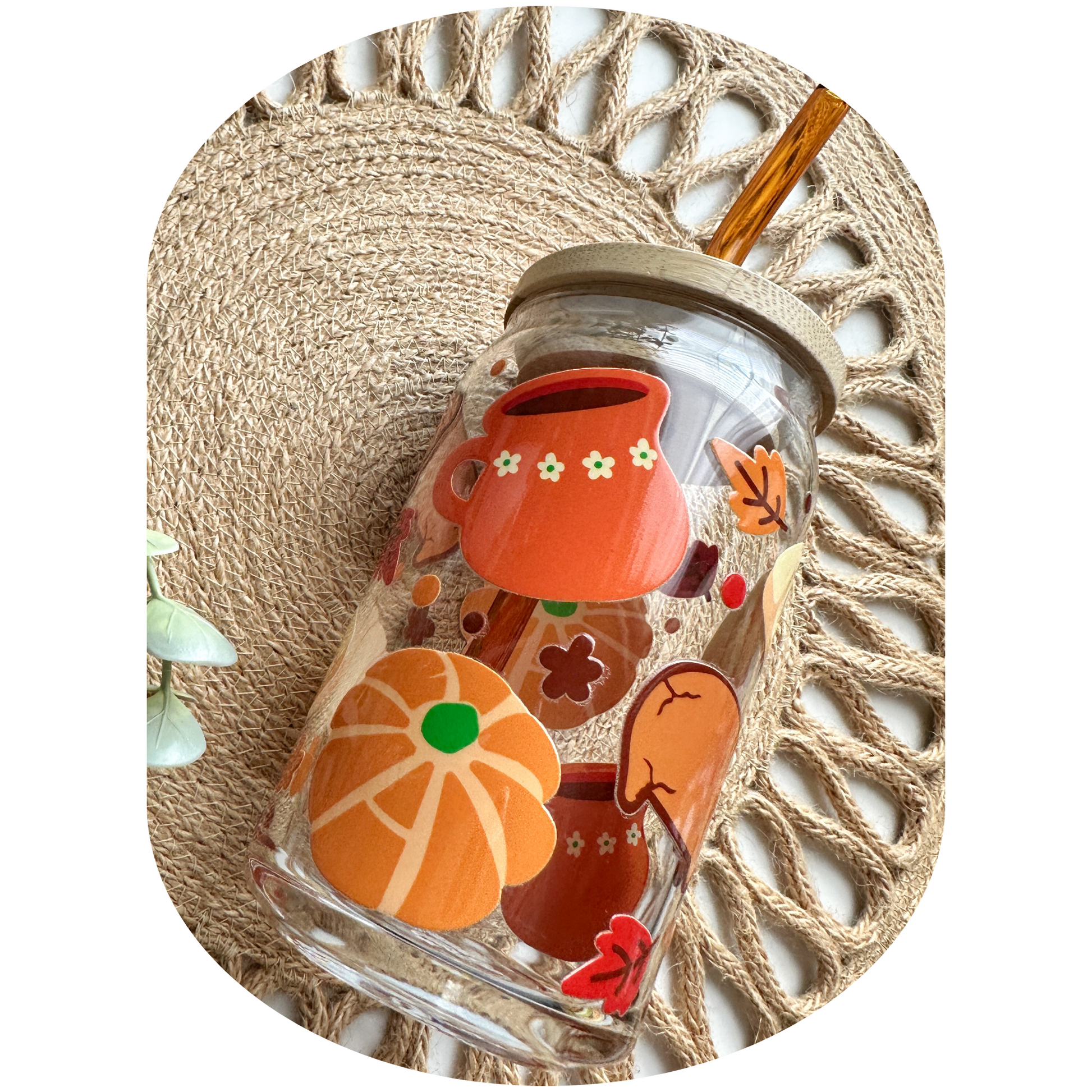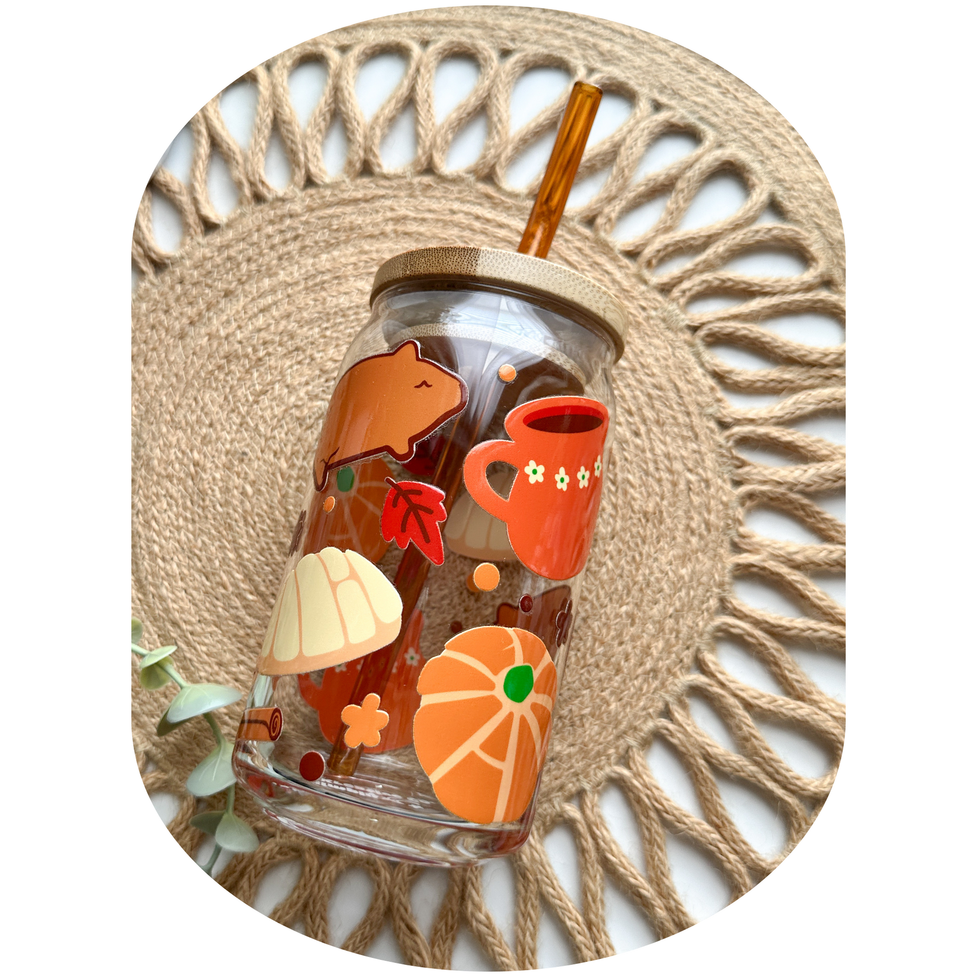 Celebrate the sweetness of tradition with this pan dulce–themed glass cup, featuring conchas, cozy breads, cafecito, pumpkins, and autumn leaves. The double-sided UV DTF design makes the artwork visible both inside and out, bringing charm to every sip. Perfect for iced coffee, tea, or your favorite fall drink.