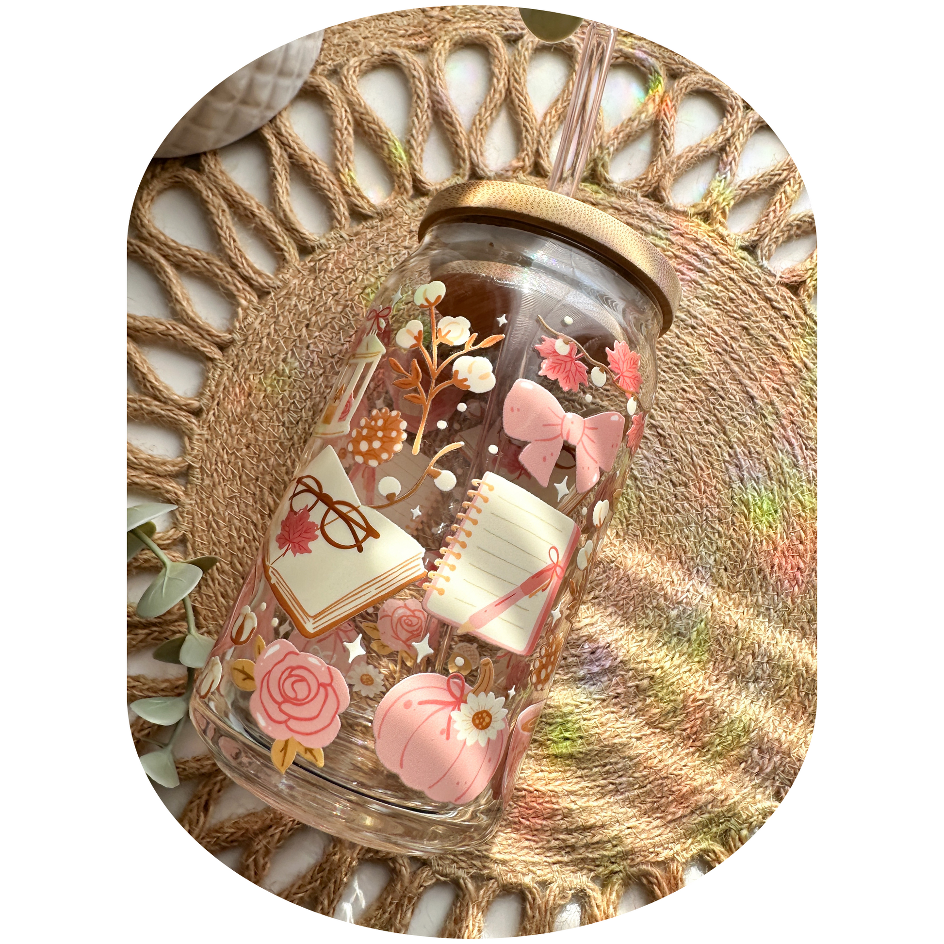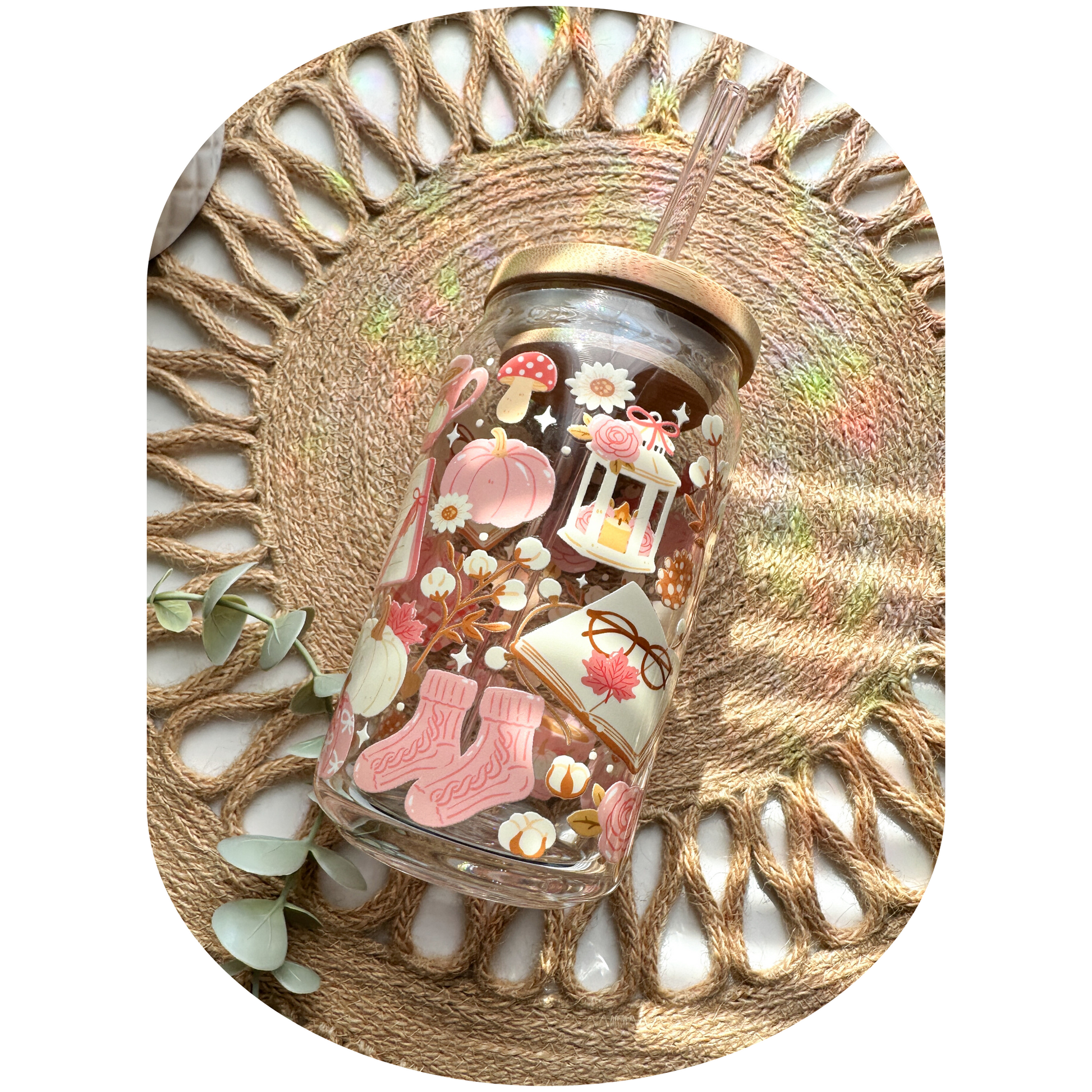 Fall coziness in a cup—this design features pumpkins, socks, lanterns, books, and all the little things that make autumn feel warm and magical. With its double-sided UV DTF design, you’ll enjoy these charming details both inside and out.
