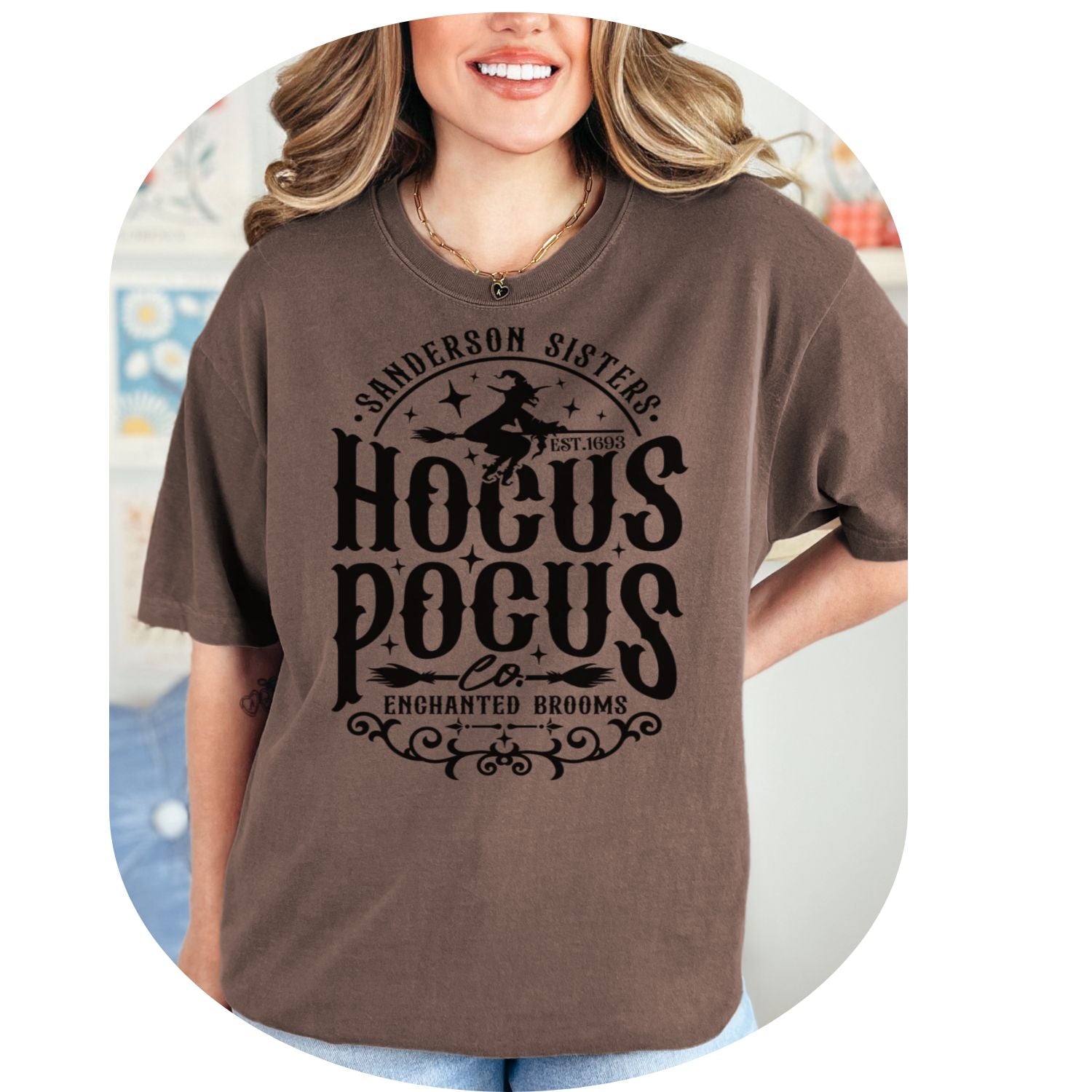 Step into Salem with this vintage-inspired Hocus Pocus tee! Featuring bold black lettering with the Sanderson Sisters and “Enchanted Brooms Co.,” this design is perfect for every witch at heart. Printed on a soft Comfort Colors tee, it’s cozy enough for everyday wear while adding the perfect spooky flair. Pair it with jeans, leggings, or even layered under a flannel for your fall adventures.