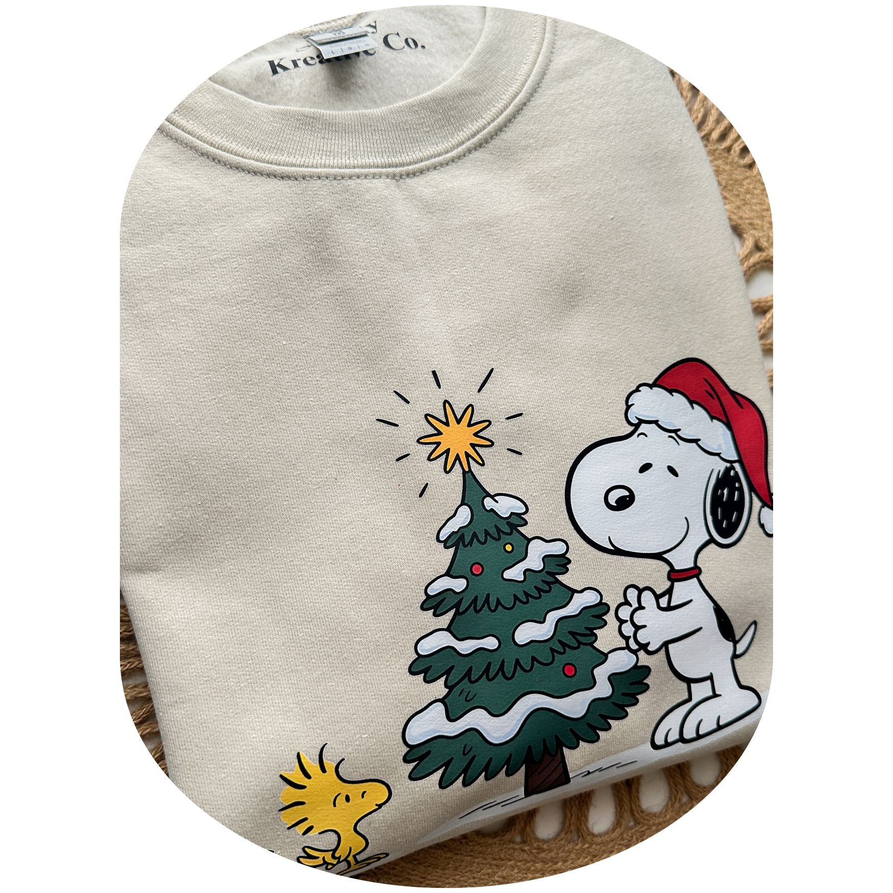 For all the Snoopy lovers — this cozy crewneck features a sweet holiday scene with Snoopy, Woodstock, and the Christmas tree. Perfect for festive winter days.